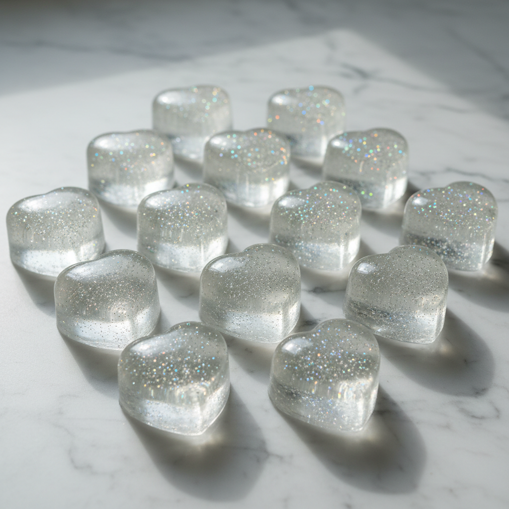 Handmade miniature heart soaps packaged in convenient travel jars, crafted for the well-informed traveler who...